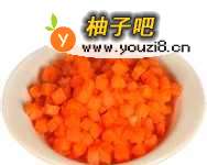 4将胡萝卜和黄瓜洗净切成丁备讨叮用。