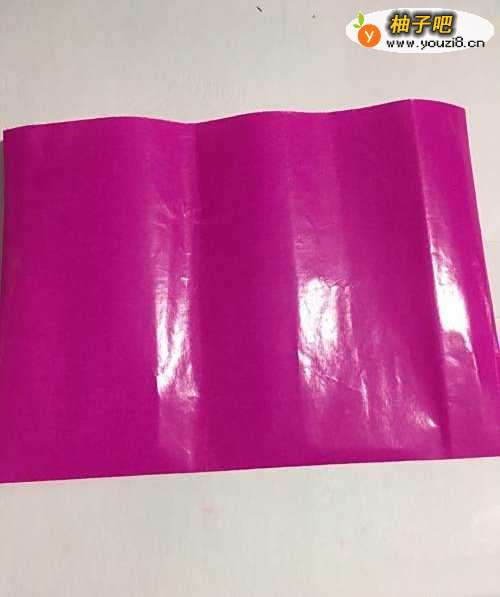 第一步 首先把一张长27厘米 宽15厘米的长方形二红色彩纸竖起来 从下向上对折后取开