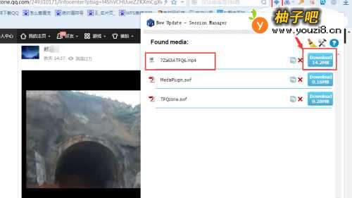 6打开QQ空间网页,找到好友上传的视频,然后点击开始播放,此时点击右上角刚才安装的下载工具图标,这时会弹出一个小窗口显示当前页面中的视频,点击相应视频后的“Download”按钮即可开始下载。