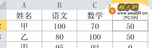 公式为:=IF(OR(B2=100,C2=100),"50","0")