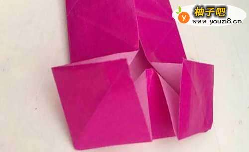 5第五步 折叠完之后 四个角向一起聚拢 把小硬角都向里折叠