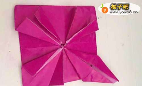 3第三步 折叠完之后 把每一个小正方形的两边都向里折叠至中线 然后取开折痕向里翻折