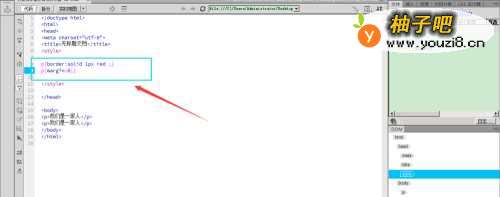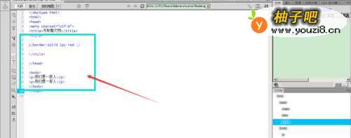 在DW中建立两个p标签,对p标签添加一个边框,如图