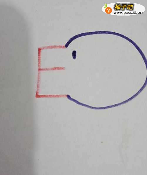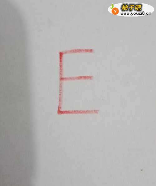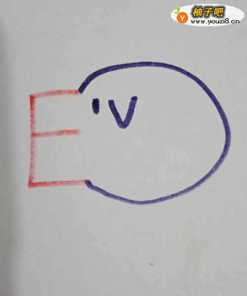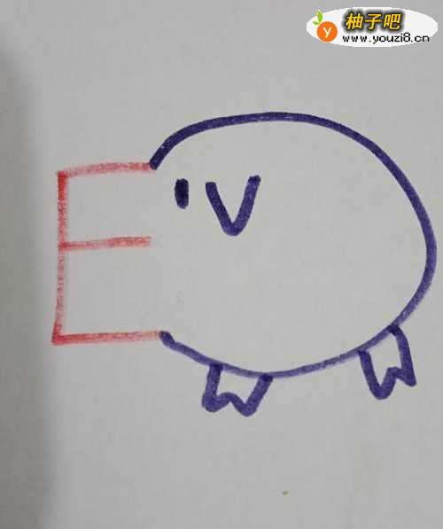 首先写出一个大写的英文字母E。猪儿的嘴巴。