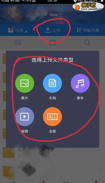 4点击"上传"可以保存文件,图片,视频,音乐等等,如图所示