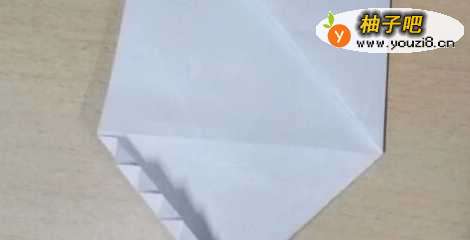 3从右下角往里面折,按照折纸扇的方法,折到小正方形的一半就可以了。