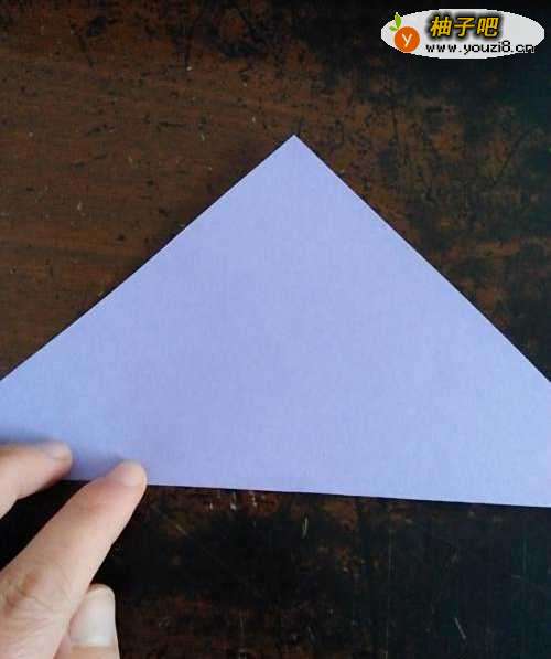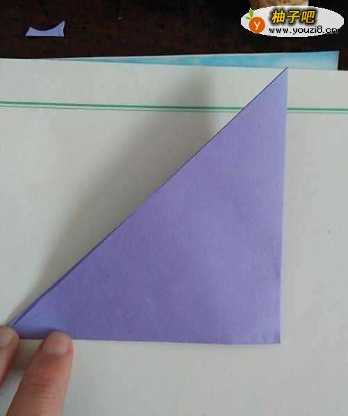 3再把彩纸的右角向着左角对折,边缘线要对齐。