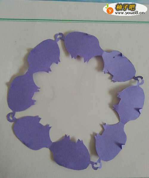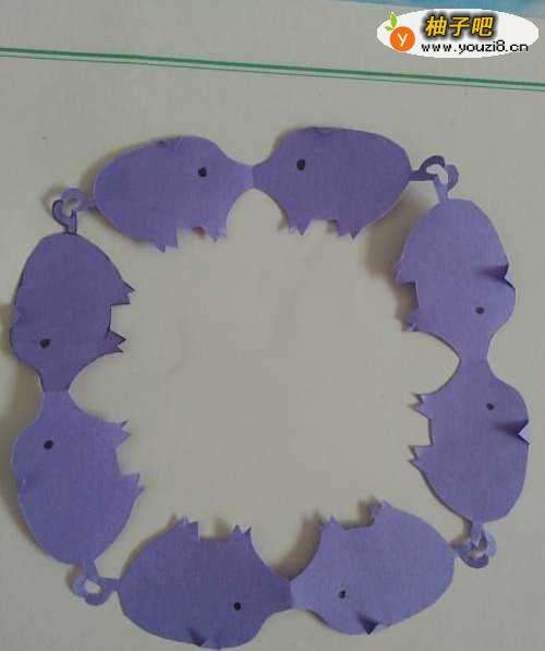 7打开后我们把每个小猪的耳朵都依次向下折。