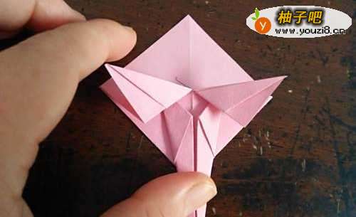 6翻到正面后,把尾部折成弯的。再画上眼睛即可。