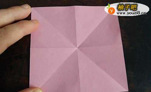 我们现在纸的中间折出米字型来,然后按照折痕,把彩纸折成图二的样子。