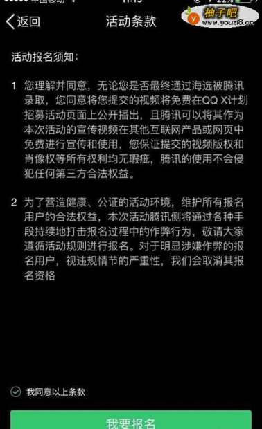 5点击报名按钮,阅读活动条款界面,点击“同意以上条款”并进入视频上传界面
