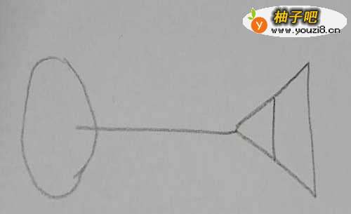 3接着从三角形的顶点往下划一条直线作为葡萄酒杯的杯柱。