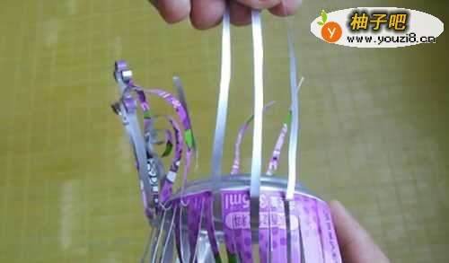 4每隔两条抽出一条细条,共抽出6小条,开始制作椅背,卷成自己喜欢的样子。