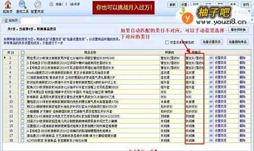 详细查看商品类目匹配的是否正确,如有问题可以手动去编辑或批量去编辑类目,然后点击“下一步”如下图所示: