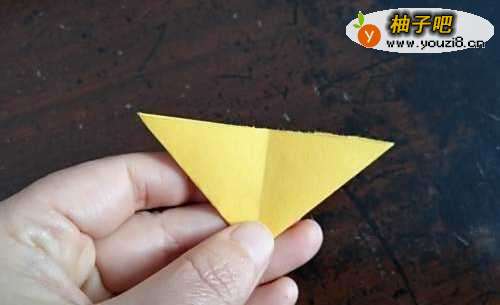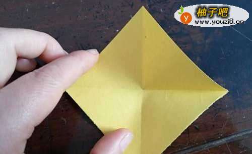 先把其中一张彩纸的两角对折,翻到另一面再把中线对折。