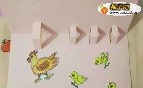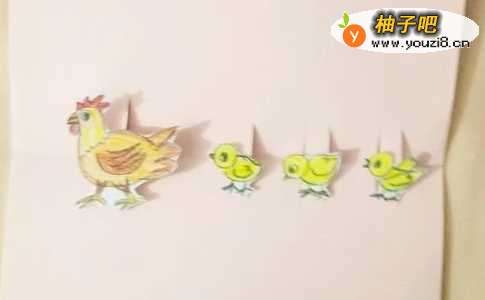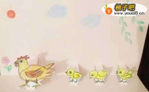 贺卡是人们尤其是孩子们喜欢的小礼物,漂亮的贺卡如果做成立体的,更是有趣。下面就做一个立体贺卡,让鸡妈妈带着小鸡宝宝散步去吧!