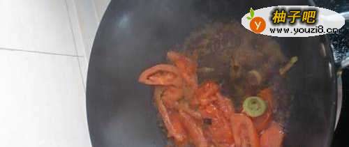 7放入西红柿,炒至出汤,依次加入盐,酱油