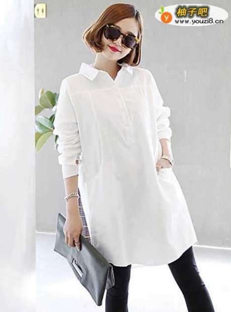 10这是一款套头长款白衬衫,有两个大口袋的设计,很有休闲风格。只要搭配简单的紧身裤就可以,紧身牛仔裤,紧身打底裤都是很好的搭配方案,颜色上选择为了显示纯洁和干练,可以搭配黑色、灰色、卡其色的紧身裤,千万不要搭配糖果色的打底裤,因为国内某宝上卖的糖果色打底裤,在配色方面实在让人不敢恭维!