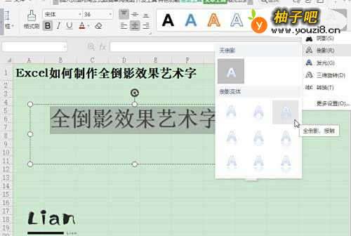 Excel如何制作全倒影效果艺术字