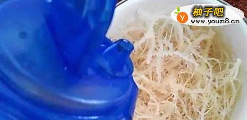 石花菜用凉水浸泡15分钟,至石花菜泡开,洗净沥干水分