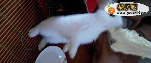 一是放在地上兔子吃了叶子,剩下的菜杆就不吃了,但吊着吃,它会吃得精光。