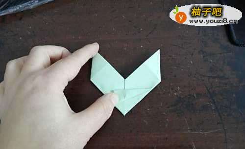 6两面都折好后,把右侧的两个角向内折到里边去。我们把里侧的角翻到外边来就可以了,图四是完成图。