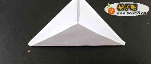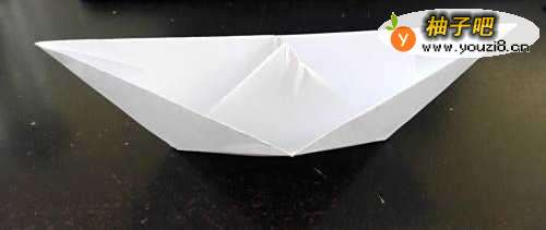 6再重复上面的步骤,把这个三角形从中间撑开,然后再往两边拉伸,一直小船儿就制作好啦。