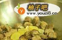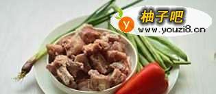 3排骨冷水下锅,放姜片、葱结、料酒煮出血水捞出控干