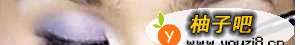 2眼影、眼线——眼头用浅紫色,眼尾用深蓝色的眼影平均涂在眼盖。黑色眼线膏顺着眼部轮廓画出一条均匀眼线。