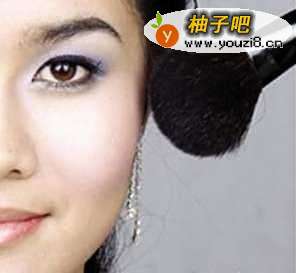 3胭脂——淡紫的胭脂轻扫于脸颊。
