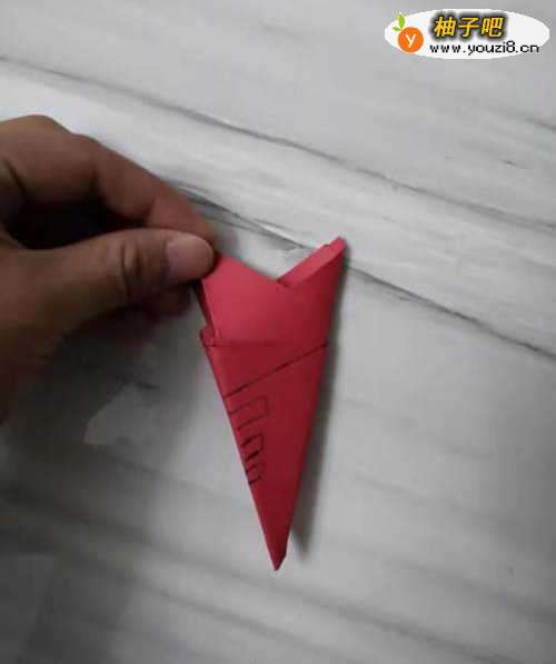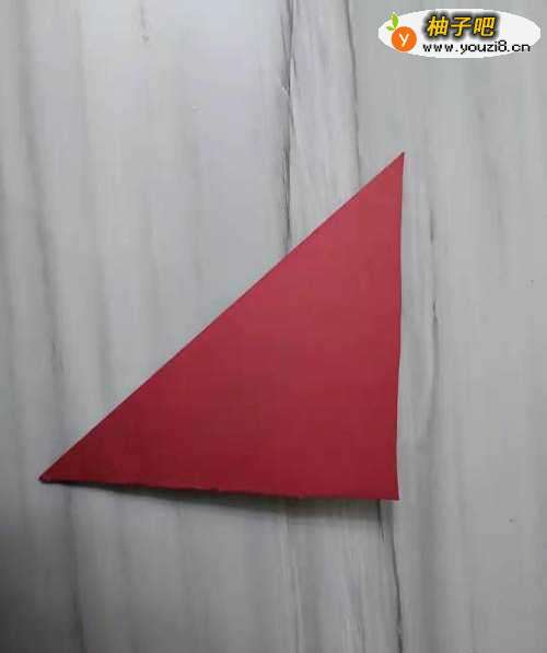 先将一张红颜色卡纸沿着一条边折叠成三角形,将多余的部分用剪刀剪掉,这样就成了一个正方形;