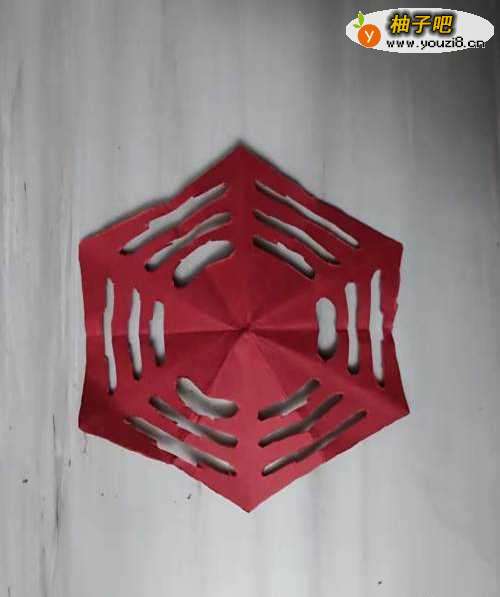 8裁剪完成,将卡纸拆开,漂亮的小雪花制作完成啦。