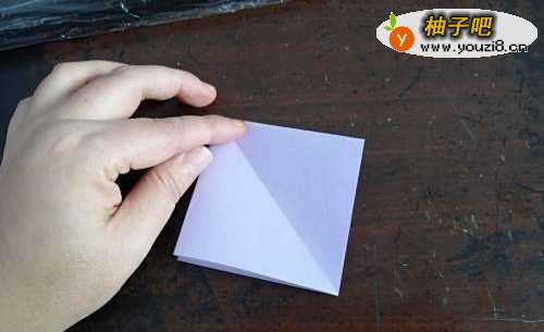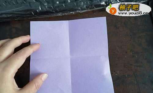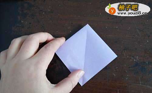 首先把纸的中线对折,翻到背面,再把对角线对折。