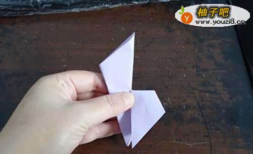 6把右边的部分向下折,左侧的向后折,图二是完成图。