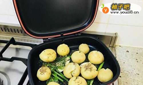 2蒸熟的小土豆轻轻按压一下