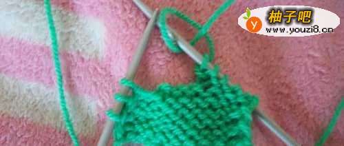 3织物反过来织到我们锁针的地方,再加出三针。方法:用手指绕圈套在织针上。这样扣眼我们就织出来了。