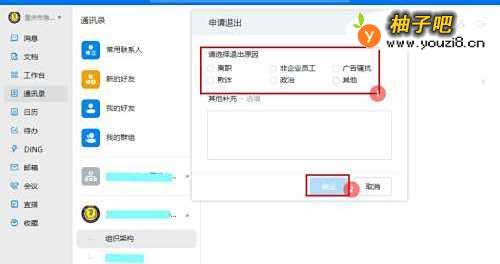 4在“申请退出”界面,选择【退出原因】,点击【确定】即可;