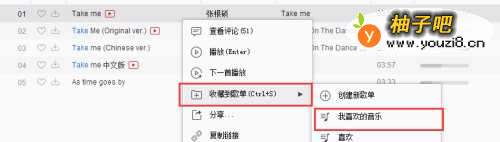 5选择其中一首点击鼠标右键显示菜单选项。