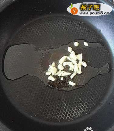 7锅内倒少许油,把蒜末爆香。(放入一半的蒜末)
