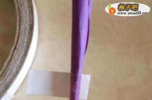 3取两片连接的花瓣,在一边稍微折出一点宽度,然后在边缘的位置涂上白胶,粘合在一起。按照这个方法,将所有的花瓣都粘合好。 用双面胶将牙签缠一圈,把单瓣的花瓣粘好,稍紧点。
