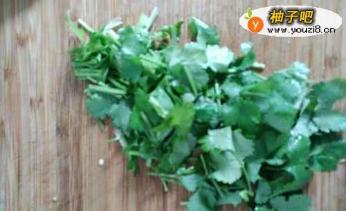 3第三步,把香菜切好后放入碗中,加入适量的鸡精和盐。