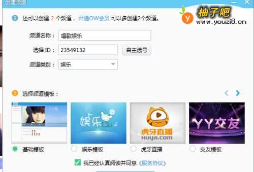 5点击创建频道会弹出一个框框填写下你的所需要的信息!在点击立即创建!