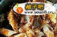 7淮山摆下面,肉铺到上面,如果还有蒸肉粉多,就放一点水调成糊糊浇到肉上。