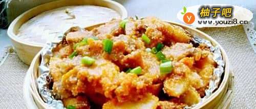 粉蒸肉(又名面面肉)是广泛流行于中国南方地区的(江西、四川、陕南、安徽、湖北、湖南、浙江、福建等地)的汉族传统名菜之一。以主料带皮五花肉加米粉和其他调味料制作而成。粉蒸肉糯而清香,酥而爽口,有肥有瘦,红白相间,嫩而不糜,米粉油润,五香味浓郁。根据烹饪方法,可以偏辣,也可以偏甜,配料可以辅以老藕、南瓜、红薯等配菜。