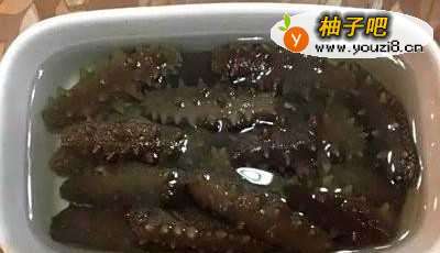 要使用清水浸泡海参1个小时,让海参发开。捞出后放入大碗中晾干水。