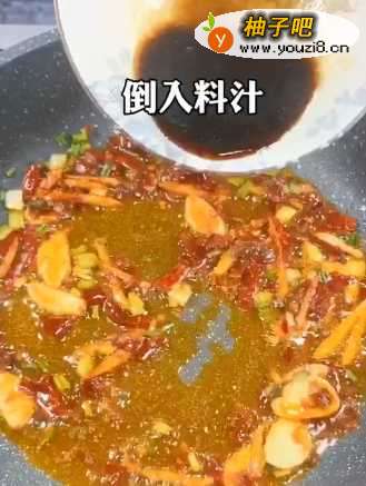 4起锅热油,下入葱、姜、蒜、干辣椒炒香
