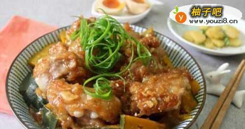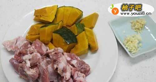 栗子南瓜(含皮)切块,排骨可以用小排或是软骨肉。