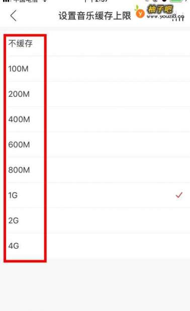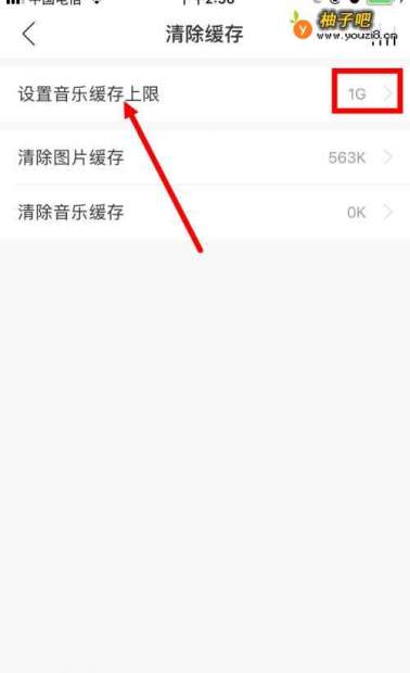 4进入 清除缓存 的页面后,我们可以看到最上面就是 设置音乐缓存上限 ,系统默认上限为1G。点击进去。
