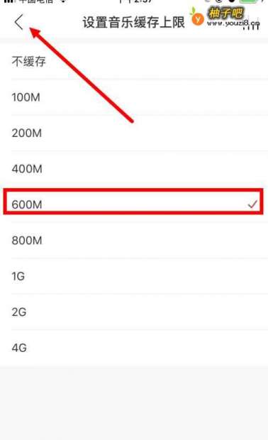 7回到 清除缓存 的页面后,就可以看到 音乐缓存的上限为600M。
