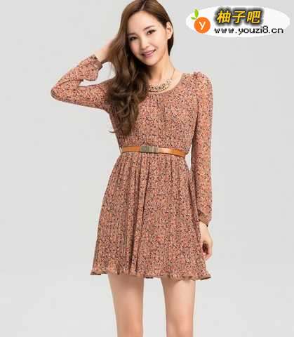8细碎的花灿若繁星,点缀出一身的春意,森女或者淑女们最爱的风格。肩部的木耳边提升了气势感,而裙身的收褶又呈现出诗意的美,长袖款型正好适合秋天单穿,系上腰带效果尤酷。